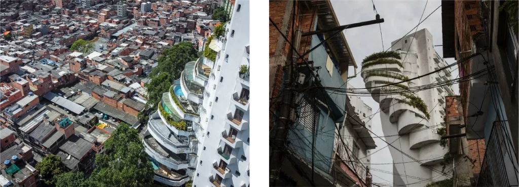 Aerial and street views of the contrasting realities in the city of São Paulo. Spatial inequality here is detected as physical symptom of social and economical inequalities.