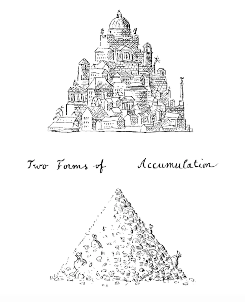 A Leon Krier sketch representing two different views of accumulation of urban 'capital'